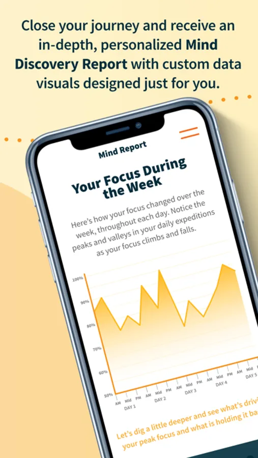 With Mindgrow, you will go on a weekly journey of discovery into your mood and ability to focus. At the end of the five days, you will receive a Mind Discovery Report – a personalized summary of your mind’s travels from the week.