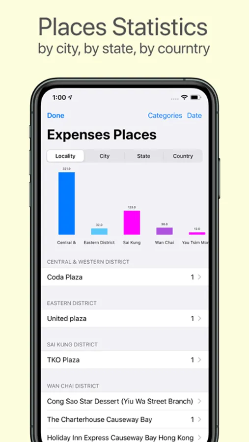 Less input does not mean that there are fewer functions. The powerful statistical function is the purpose of your accounting. Whether it's statistics by date, by category, or by location unique to Here's bookkeeping, you can switch between dates, locations, and categories. Clearly count when, why and where your money was spent.