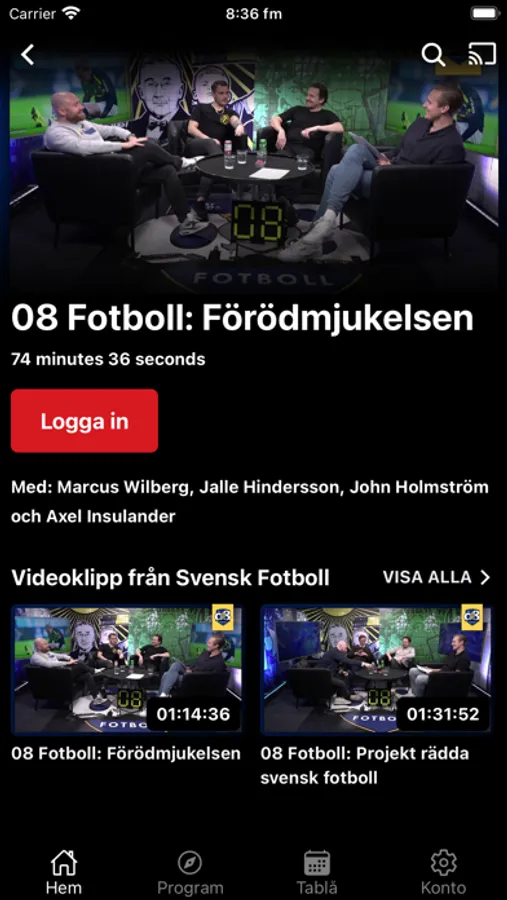Flera av våra program sänds live och alla program kan ses i efterhand eller lyssnas på via podcast i appen.