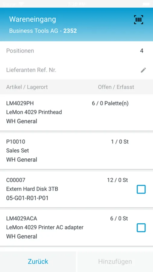 Always keep an eye on the actual status of goods in stock. Via barcode or other identifiers. Fast check over several warehouse instances.