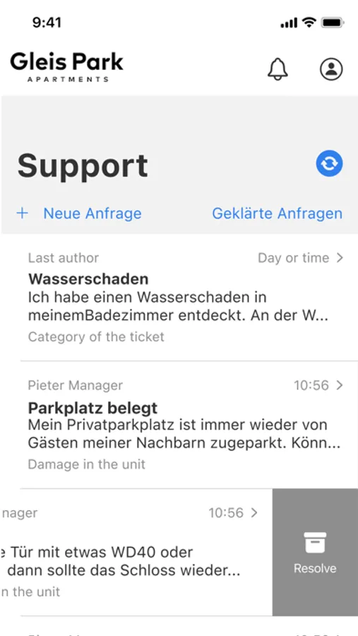 With this app, you have mobile access to all Gleis Park functions. The Gleis Park app organizes your digital living experience and is your direct line to your property management.