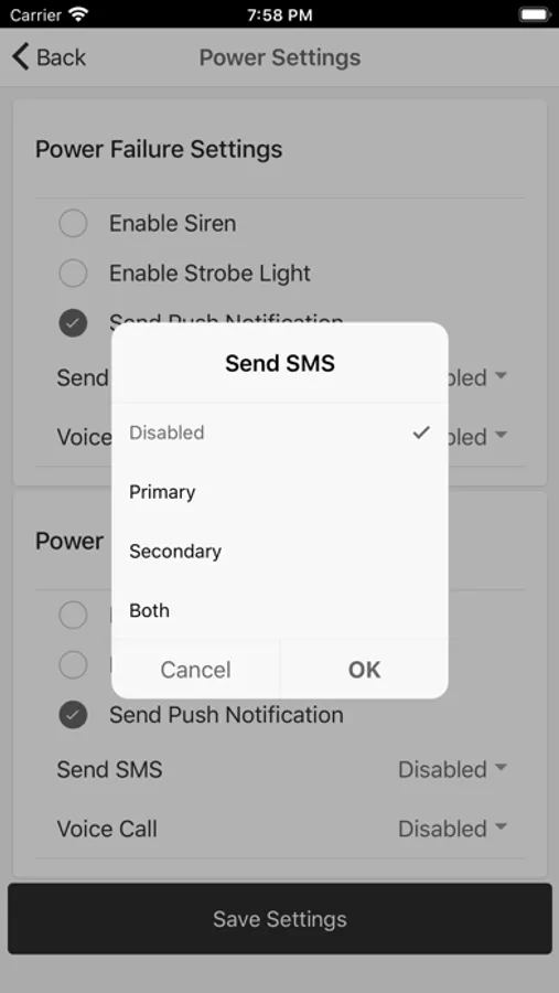 Siren, Strobe light, Push notification to App, SMS and Voice calls to any two predefined numbers