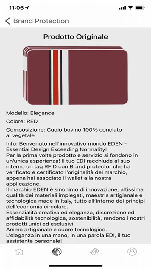 Grazie all’app EDEN puoi verificare l’originalità, la sostenibilità e l’alta qualità Made in Italy del tuo wallet EDI.