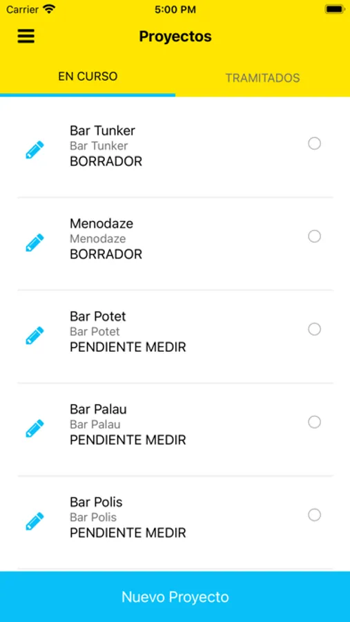 La aplicación se divide en 2 funciones principales: la gestión de proyectos y el catálogo de productos.