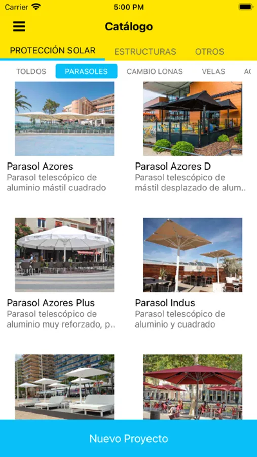 El catálogo reúne productos por familias y pueden ser incorporados a los proyectos gestionados.