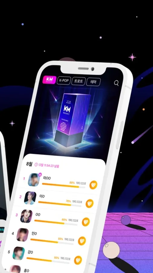 전세계 팬덤의 투표 참여로 순위에 따라 아이돌, 트로트 최애 서포트를 진행할 수 있어요.