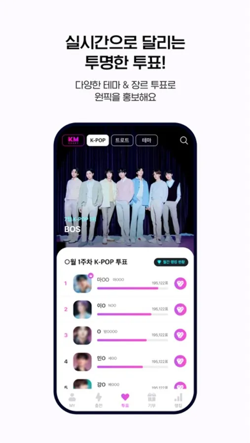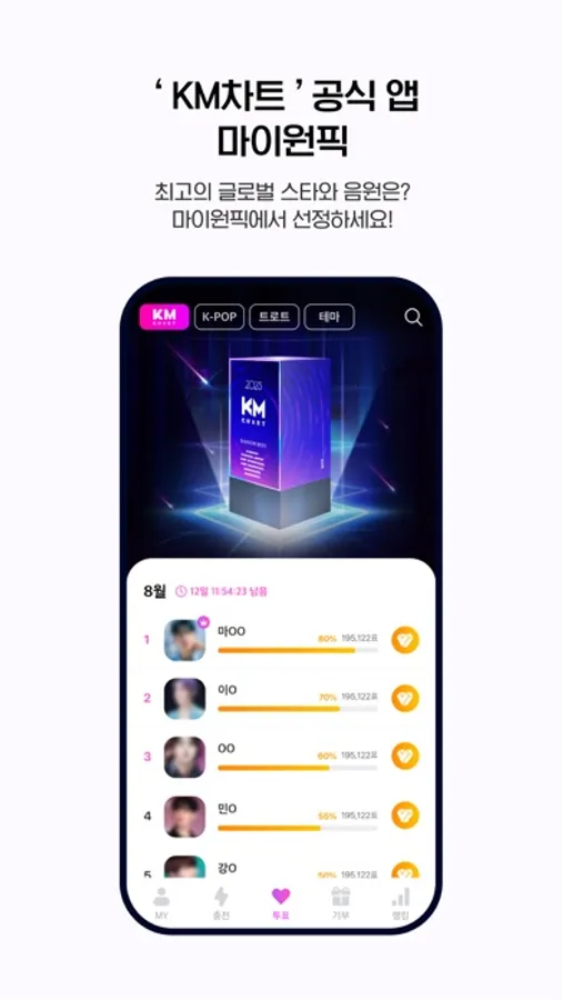 글로벌 스탠다드 케이팝 차트, KM차트 공식 투표 앱 마이원픽(MY1PICK)