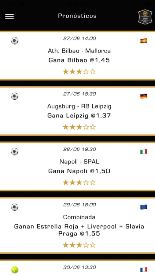 Ahora puedes obtener pronósticos deportivos en un simple vistazo. Recibe los pronósticos en forma de notificación en tu móvil, sin necesidad de estar comprobando constantemente páginas web, redes sociales o prensa deportiva.