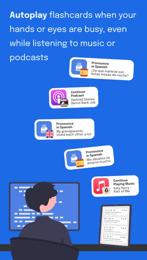 Flashcard autoplay and auto-pronounce loops over your flashcards for times when you cannot use your hands