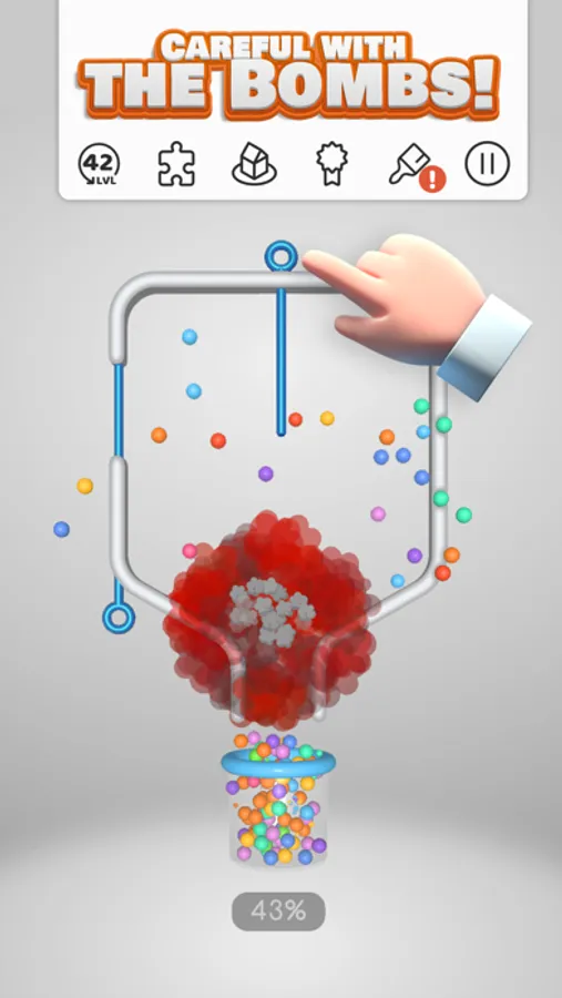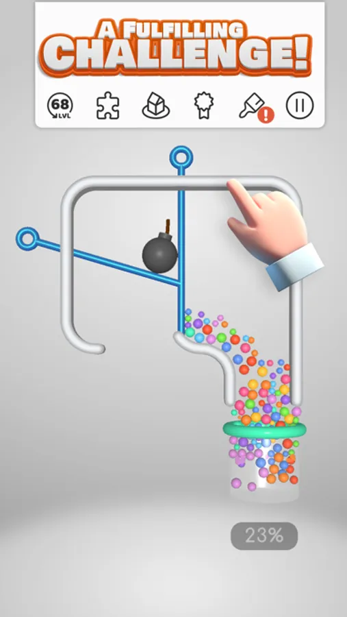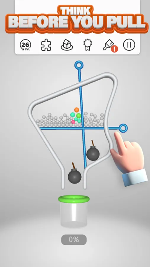 It should be simple: gravity pulls the balls down towards the pipe. But then pins are in the way! Can you help out and flip away the pins and get the balls to where they are supposed to be?