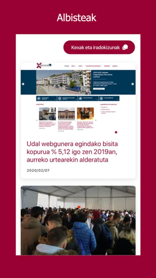 App honen bidez, Eibarko Udalaren albisteak eta gure herriko agenda kontsultatu ahal izango dituzu. Gainera, zure galderak, kexak eta iradokizunak ere zuzenean bidali ahal izango dituzu gure Udalera. Eibarko Udala, eibartarron zerbitzura.