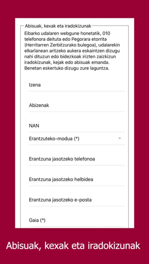 A través de esta app, podrás consultar las noticias del Ayuntamiento de Eibar y la agenda de nuestra localidad. Además, podrás enviar tus preguntas, quejas y sugerencias, directamente, a nuestro Ayuntamiento. El Ayuntamiento de Eibar, al servicio de los/as eibarreses/as.