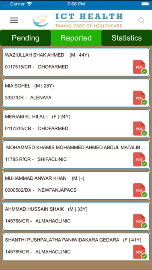 App provides the list of all reported cases by the radiologist with an option to view radiology reports .