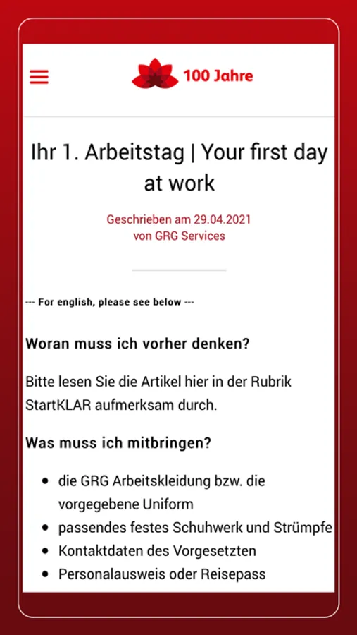 Die GRG App bündelt alle wichtigen Informationen an einem Ort: News zum Unternehmen, Entwicklungen der Branche und Wissen rund um das Gebäudereinigungshandwerk.