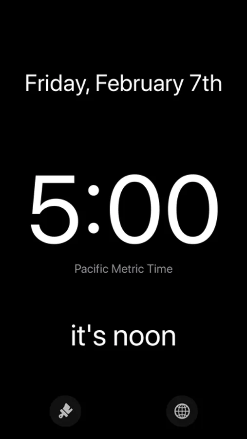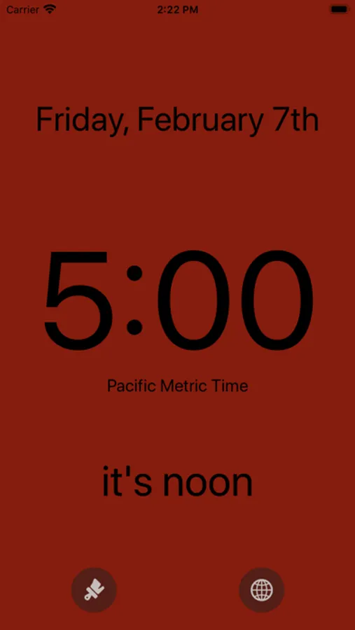 Click the paint brush button to change the colors of the interface. Also, switch back and forth between local metric time and Universal metric time with the globe button.