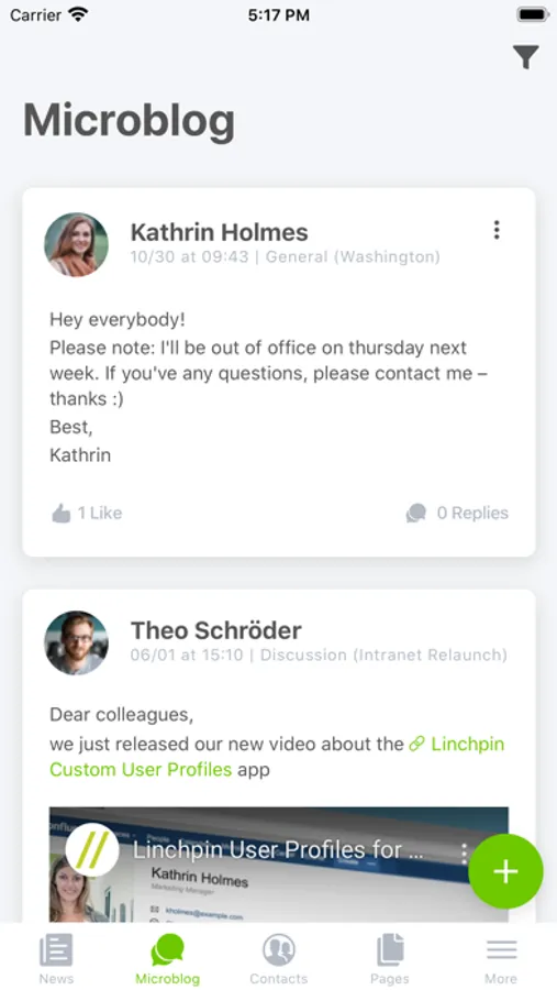 Check for news and microblog posts on the go and join the discussion! Sharing important announcements, interesting news or ideas has never been easier.