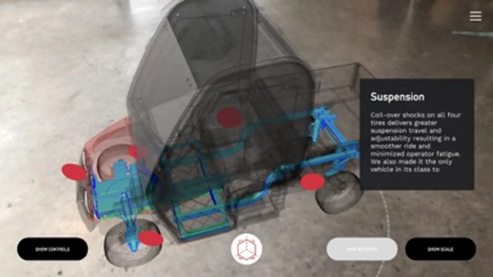 Toro Augmented Reality App - An interactive experience where you can interact with virtual Toro products in your real-world setting. Configure virtual products in real time while physically moving around the product to get different perspectives/views.
