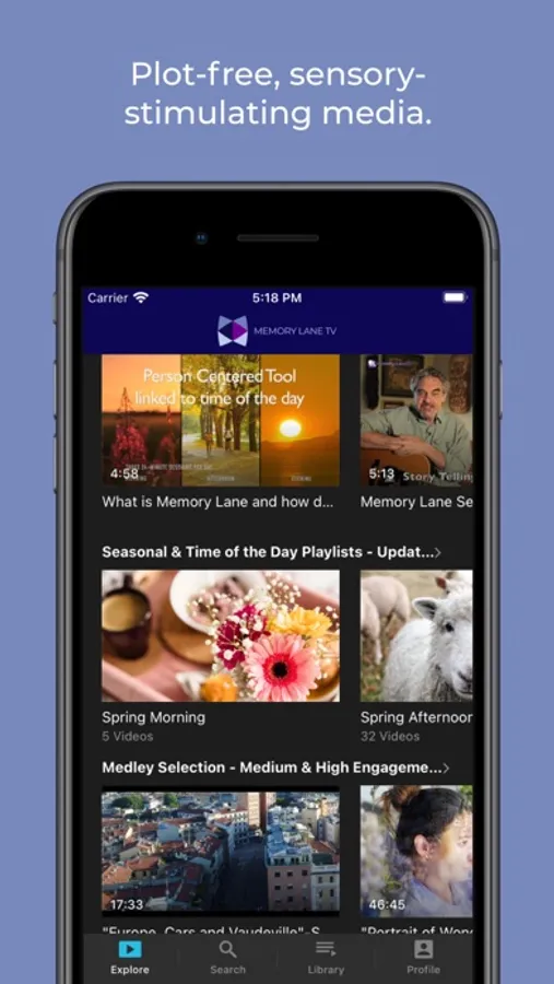Memory Lane Tv is a series of science based plot free , positive sensory stimulation, adapted for people living with dementia and their caregivers to make everyone feel good and communicate. A digital Intervention Inducing a relaxation response, respite & multi-sensory stimulation for everyone Involved.