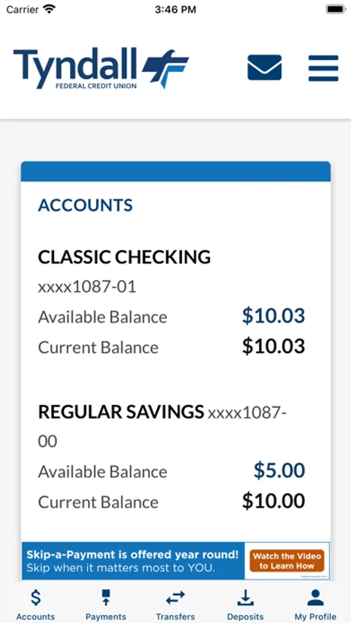 With Tyndall's Online Banking App, you can get fast, easy, and secure access to your Tyndall accounts right from your mobile device.
