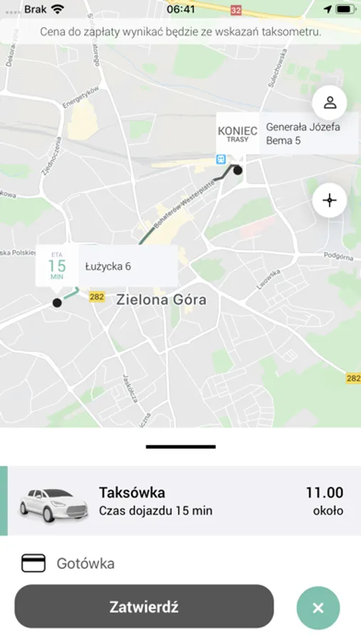 poinformujemy Cię w jakim czasie taksówka do Ciebie dojedzie.