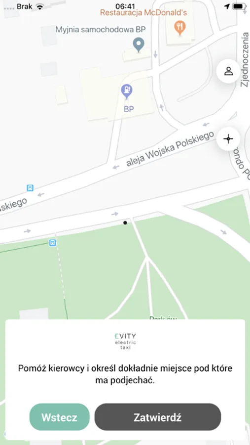 Wybierz miejsce, gdzie ma podjechać kierowca oraz czas (data i godzina).