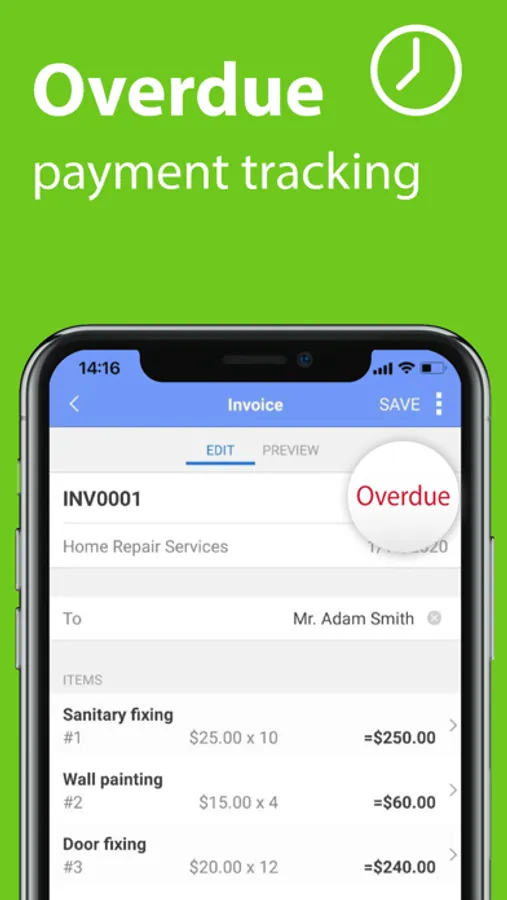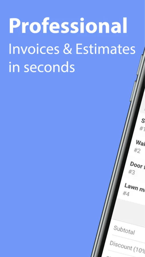 Creating a professional invoice or estimate takes you just a few seconds and a couple of taps, as you save all details of your product or service — description, price and more. Convert estimates to invoices with one tap.
