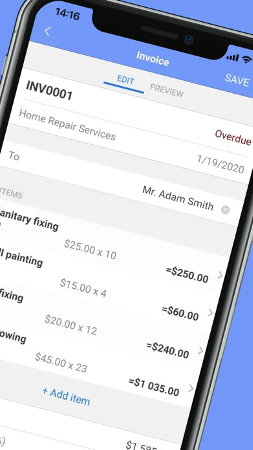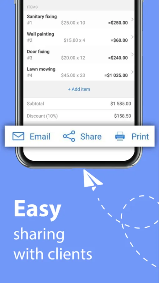 Never put off sending an invoice or estimate to your customer - you can easily create and share it before you leave the sight. Enter all the details you need, including tax or discounts - the app will do the math for you. Check simple and convenient reports in one glance to follow up on clients’ payments.