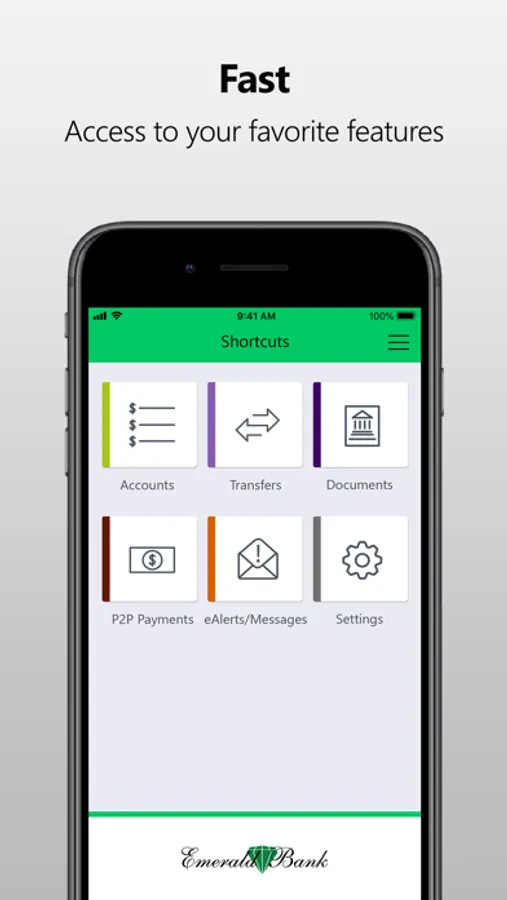 Emerald Bank Mobile Banking allows you to view your bank accounts, schedule transfers between them, and even deposit checks from anywhere!