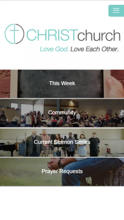 Welcome to the CHRISTchurch app! This app is intended to provide a way for the community at CHRISTchurch to keep up-to-date with church events on a weekly basis, watch current and past sermons, connect with small groups, submit prayer requests, give online, and view other church info. The features in the app include an event list/calendar to learn about upcoming events, a video viewer to view current/past sermons, a social wall for users to discuss the sermon series, maps to locate nearby small groups, discussion boards for each small group to stay in touch, forms to submit prayer requests or give online, and links to church social media accounts and other helpful resources for the church community.