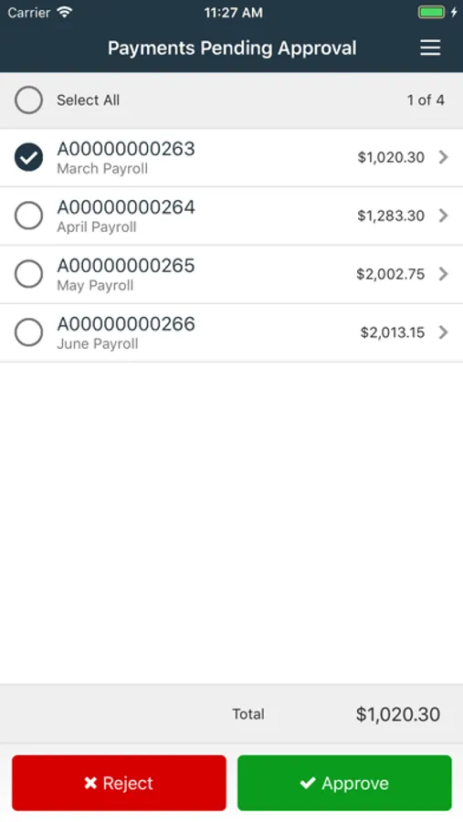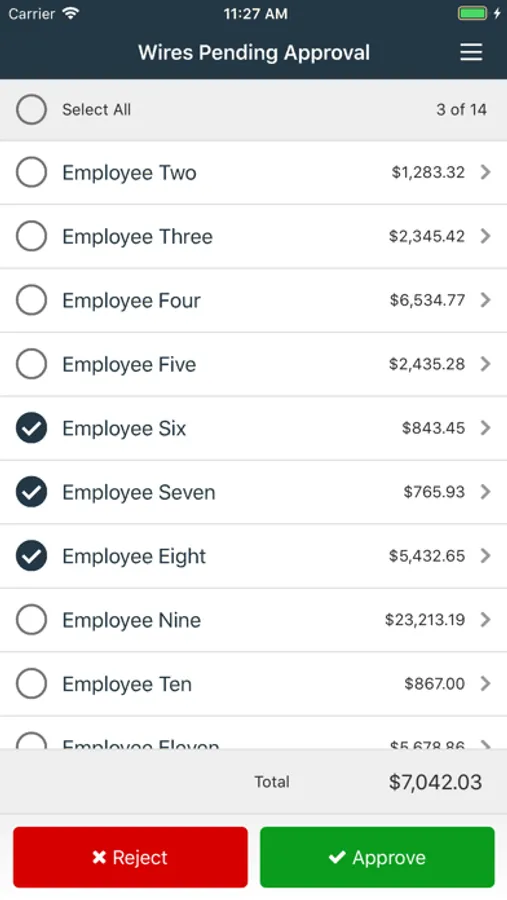 Select a section under Pending Approvals or Positive Pay Decision to view the approval page for those items.