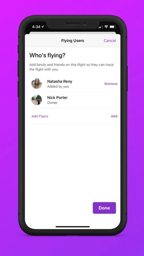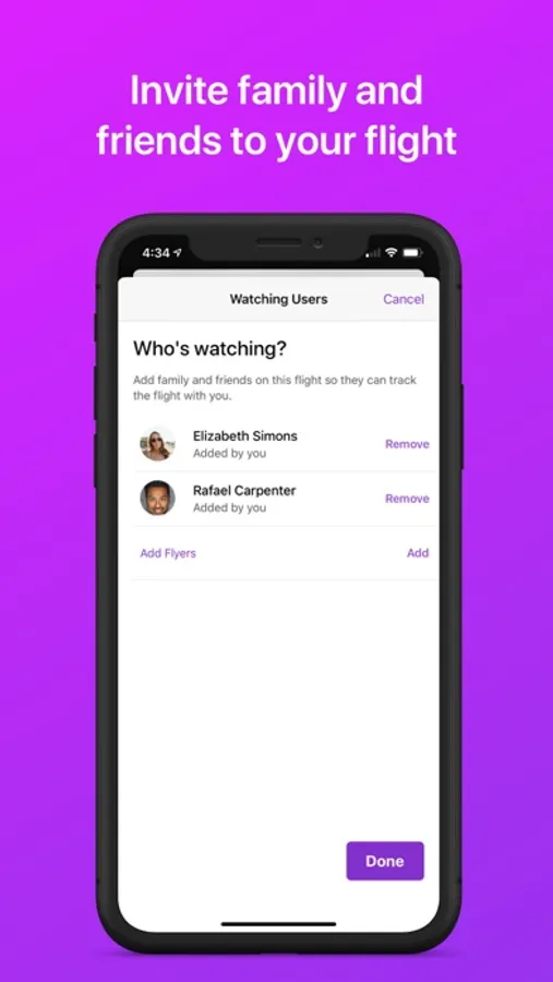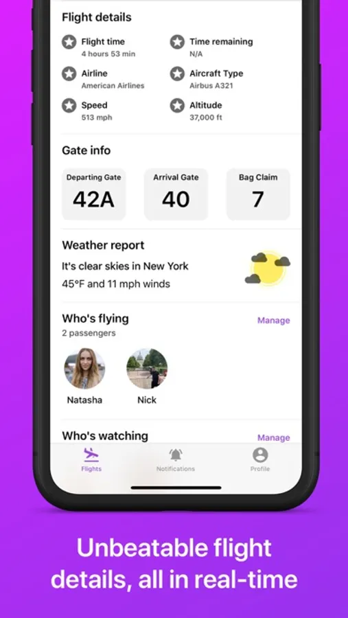 Real-time Notifications: Receive real-time notifications when your flight departs and arrives. Alerts are sent to all members of the flight to keep everyone up-to-date on the flight status.