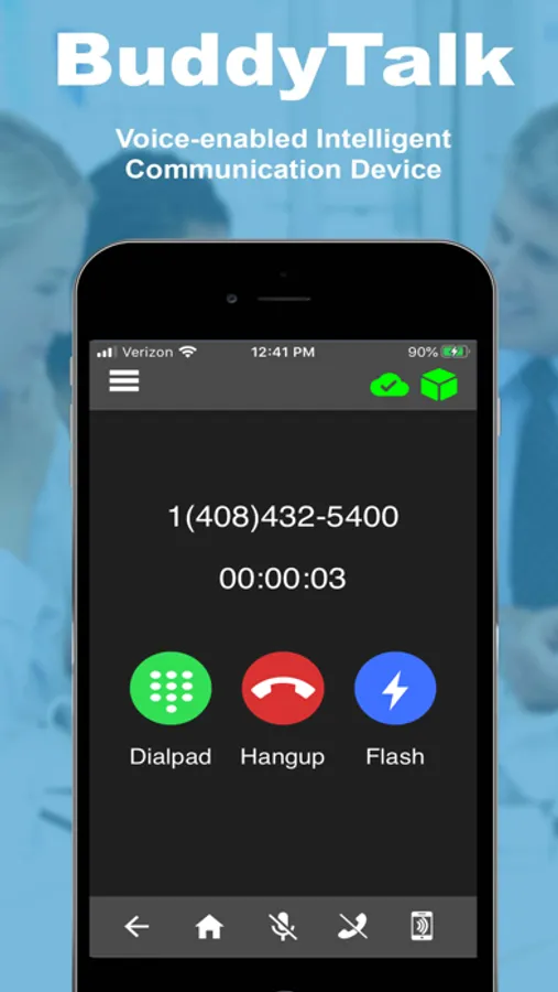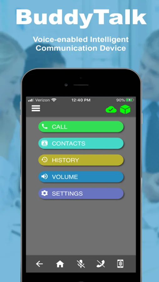 The smartphone app provides a touch-based GUI, allowing the use of a numeric key pad, call history, or contact list to make calls, check call history, or control volume. It further provides a private voice mode to conduct AVS and voice communications discreetly.