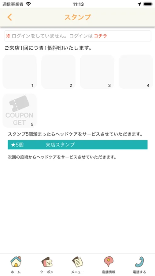ご来店スタンプをためるとお得なクーポンが発行されます(ご利用条件がある場合がございます)