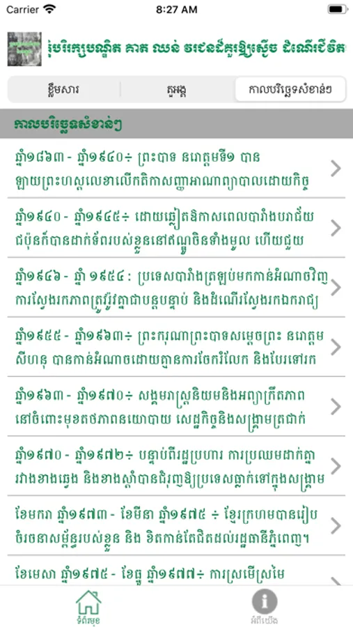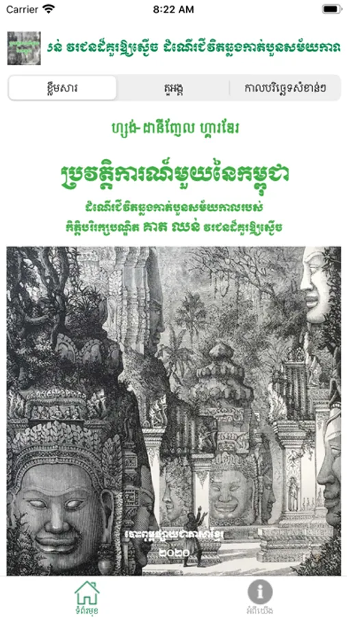 This application provide us a great tool to access the book named "A CAMBODIAN HISTORY - the 4 lives of the amazing Mr. Keat Chhon" published in 2016, which is translated in Khmer in 2020.