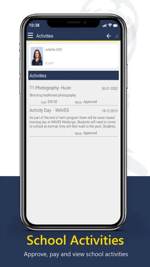 ° student activities - provide consent for excursions