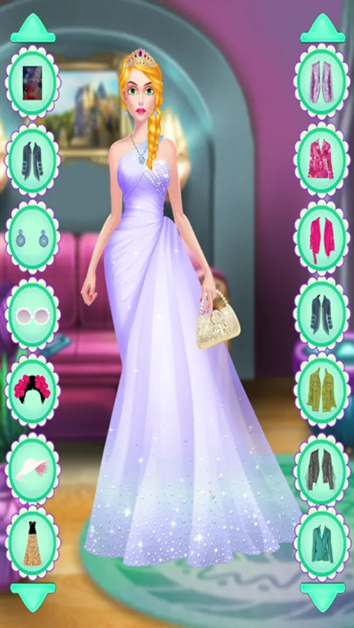 Choose hairstyle, dress, gloves, shoes, wings, and other accessories for your princess girls. This Girls Game lets young fashionistas develop their taste and fashion designer skills.Types of items in the game: hairstyles, dresses, tops and skirts, statuettes to hold in the hand, shoes, handbags and jewelry.