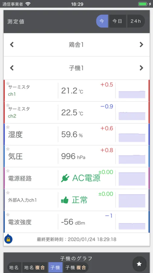 鶏舎での温度異常などのトラブルがあった際につたえる蔵から警報の通知を受け取れます。
