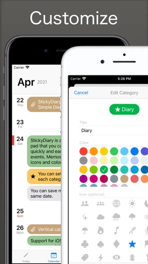 - You can set the color and icon for each category.