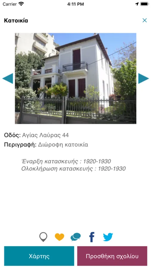 The app was created as part of the “Recording, Documentation and Enhancement of 19th and 20th century buildings in Athens” program, carried out by MONUMENTA, a civil non-profit company for the protection of natural and architectural heritage in Greece and Cyprus, during the period 2013-2019, with the exclusive donation of the Stavros Niarchos Foundation (SNF) (www.snf.org).