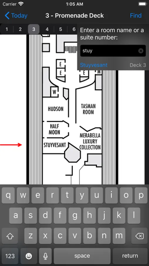 • Searchable Maps: Type in the name of a suite number, or any named room on the ship, and be directed to its location.