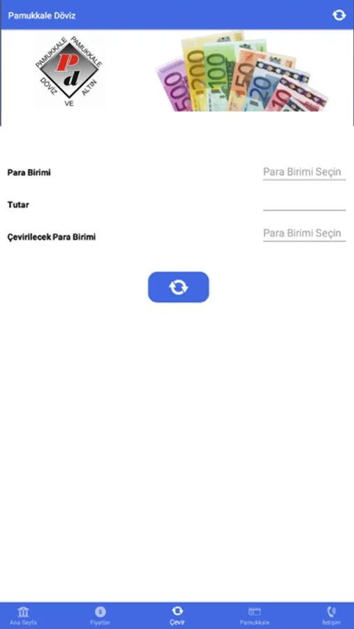 Pamukkale Döviz ve Altın fiyatları ve Merkez Bankası Fiyatları ile Kur Hesaplama uygulaması sunar.
