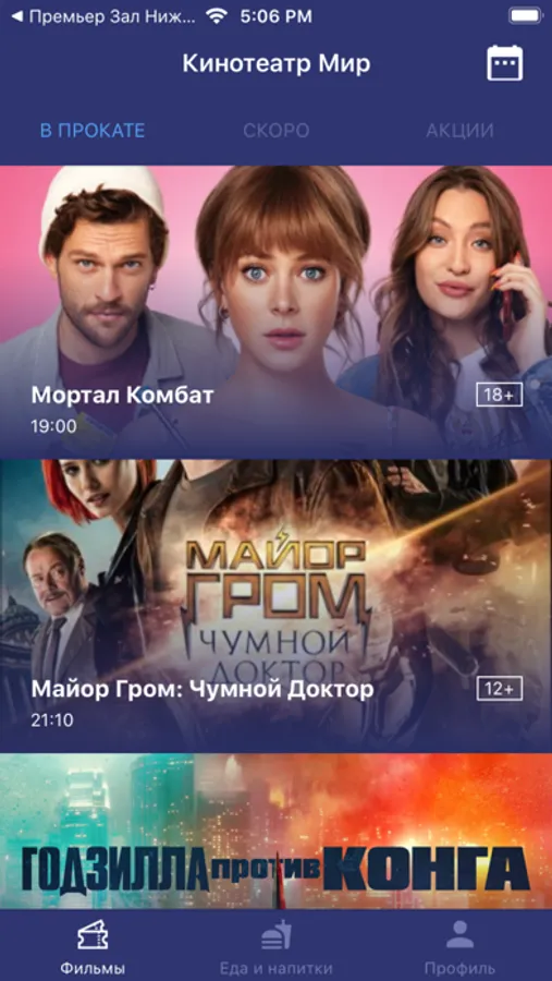 В приложении «Мир» вы можете приобретать билеты на любой киносеанс в кинотеатре Мир г. Качканар. Вы так же можете приобрести продукцию кинобара.