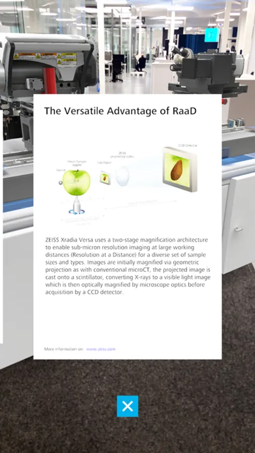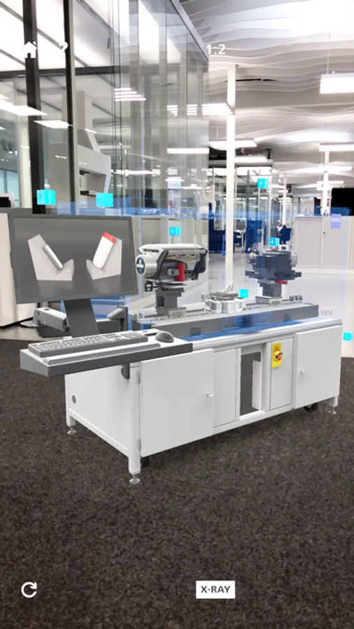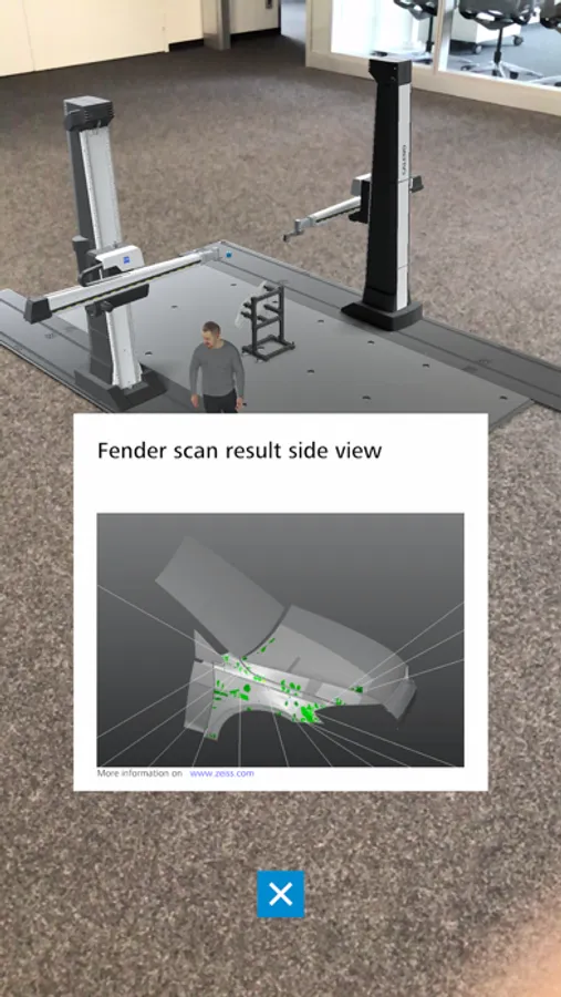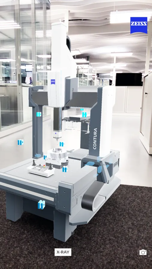Experience ZEISS measuring equipment interactively. The augmented reality features enable fast access to additional information, such as videos, graphics, animations and more. In addition, large measuring machines can be placed visually in a space to see which size best fits to the room. Also, use the app to get an overview of ZEISS machines, and explore the fascinating technology insights of the interior of machines using the X-ray view.