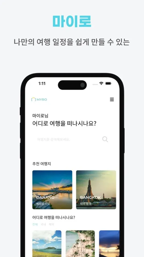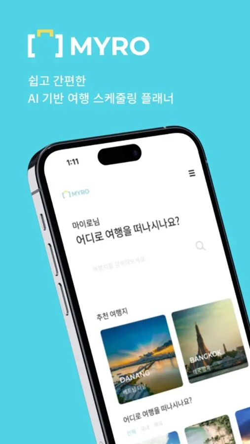 마이로는 여행자들이 더욱 편하게 일정을 준비할 수 있도록 인공지능 기반의 여행 플래너를 제공하는 서비스입니다.