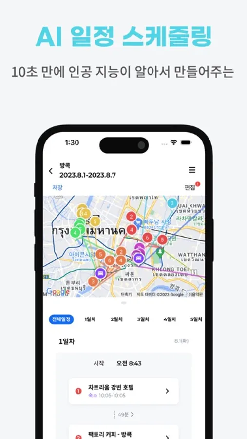 클릭 몇 번으로 최적화된 여행 일정을 자동으로 만들 수 있습니다.