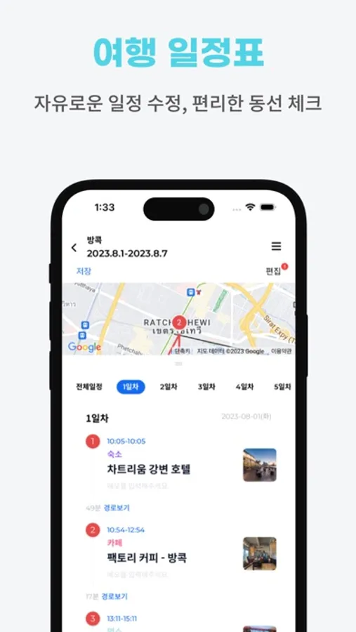 - 내 여행 일정에 맞춰 한 번의 클릭으로 구글 지도와 연동해 길 찾기