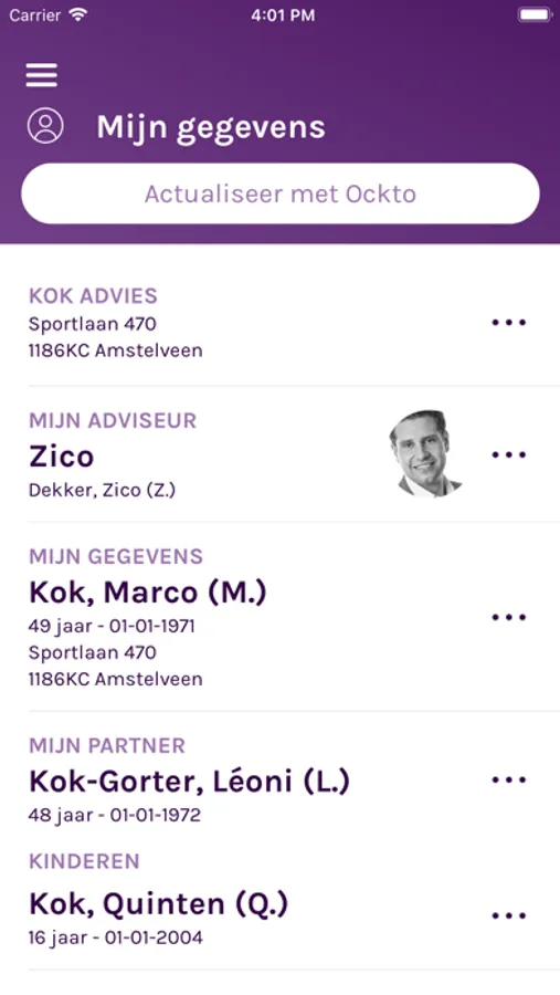 Met deze app heb je al je financiële producten op één plek, waardoor je altijd en overal inzicht hebt in jouw hypotheek, verzekering en afspraken met KOK Advies. Een wijziging of schademelding kun je eenvoudig doorgegeven. Daarnaast kun je op een veilige manier documenten aanleveren. Je hebt zo optimaal inzicht in je eigen financiële huishouding en je adviseur is altijd in de buurt. Dat geeft financiële rust!