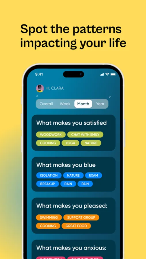 Vibe AI will help you observe the correlation between your mood and activities during the day to see the patterns in your life.
