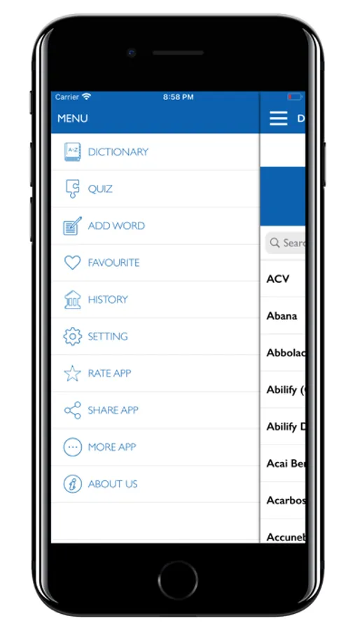 This application provides a variety of vocabulary and terms in Drugs.If you have trouble finding definition or meaning fo a term in the field of Drugs, you can try this awesome app.There are tens of thousands of Drugs terms and words with clear explanation
