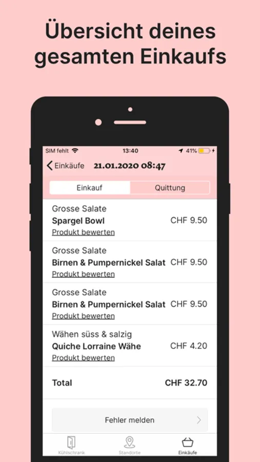 Verschaffe dir unter «Einkäufe» einen Überblick über deine gekauften Produkte.